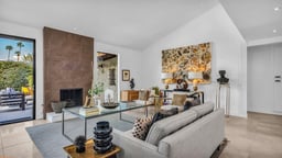 Beautifully remodeled 1970s Mid-Century home in the desirable Los Compadres neighborhood of South Palm Springs. Located on fee land. This move-in ready property offers 2 bedrooms plus a den (originally a 3rd bedroom) and a spacious primary suite with Panoramic Mountain views. Fully renovated in 2024 with new porcelain tile floors throughout, a custom kitchen with quartz countertops, and Premium Bespoke appliances. Bathrooms feature new vanities, mirrors, lighting, and fixtures. Additional upgrades include custom pantry cabinetry, new window treatments, recessed lighting, refreshed landscaping, and a new garage door with epoxy-finished flooring. The backyard is a Private Desert Oasis with a Boomerang-Shaped Pebble Tec pool and spa, perfect for entertaining or relaxing. As part of a 50-home HOA, residents also enjoy access to a private 2-acre park with a dog park, tennis and pickleball courts, just around the corner at Beverly and Alta Loma Drive. This home blends timeless Mid-Century charm with modern finishes in one of Palm Springs' most sought-after neighborhoods. Close to shopping and restaurants. Buyer and Buyer's agent to conduct their own due diligence.